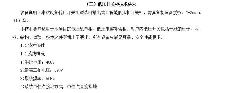 招标文件p38页描述:设备说明(本次设备低压开关柜型选用抽出式)智能低压柜开关柜,需具备制造商授权:C-Smart(L)型截图如下:
