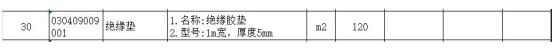 清单中标注的配电房绝缘胶垫是120㎡,截图如下: