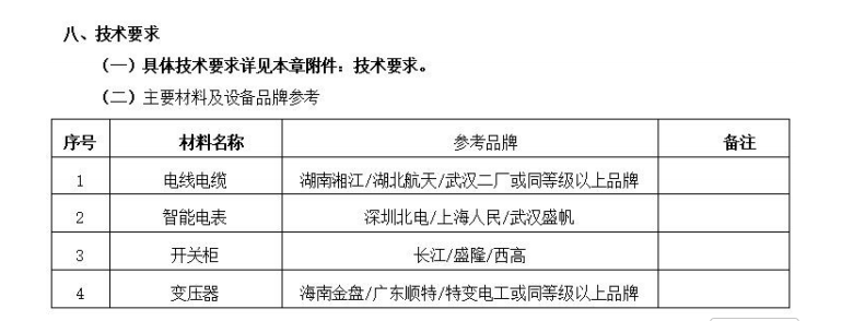 招标文件P26页标注开关柜品牌要求有三家,截图如下: