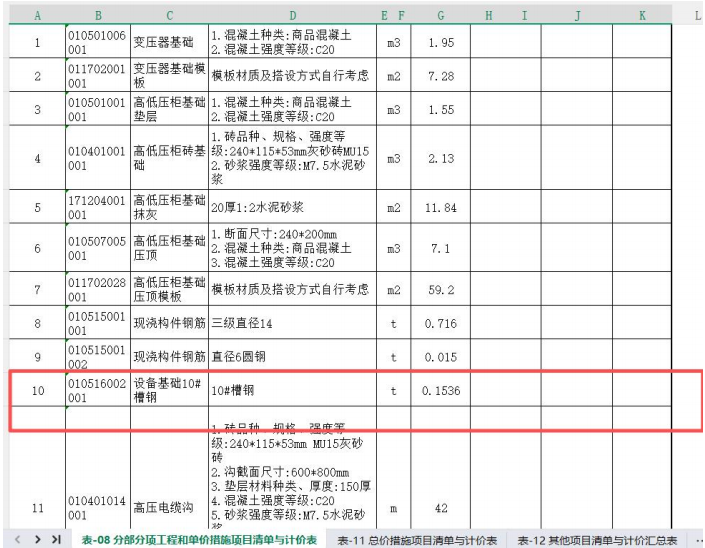 4.14日发的清单设备基础10#槽钢的清单量为0.1536吨,截图如下: